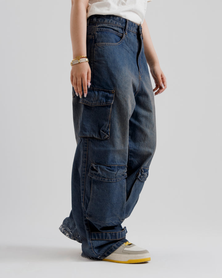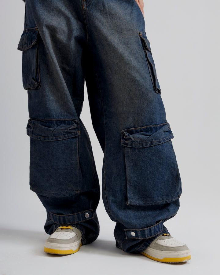 Meet the Dark Indigo Cargo Jeans — where classic denim meets utility street style.
